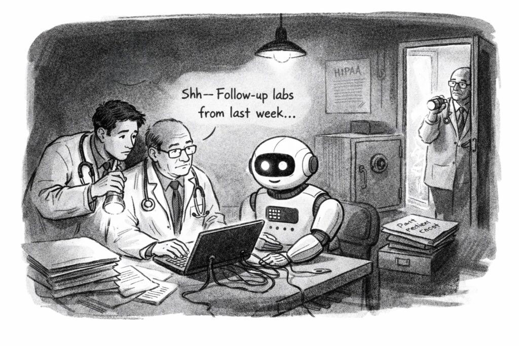 In many settings, pasting identifiable patient information into publicly available AI systems could run afoul of privacy rules and institutional policies, especially when no business associate agreement or equivalent contractual protection was in place. Yet that did not stop people. The tools were simply too useful. Today, some health systems do have contractual arrangements with leading AI vendors that provide stronger protections and limit how submitted data may be retained or used. But those protections still do not apply to many of the models that clinicians can easily access on their own.